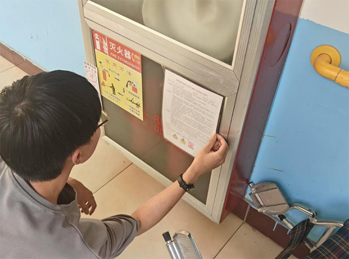 圖為實踐團成員在檢查消防設施