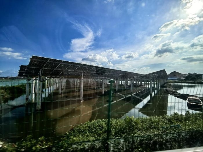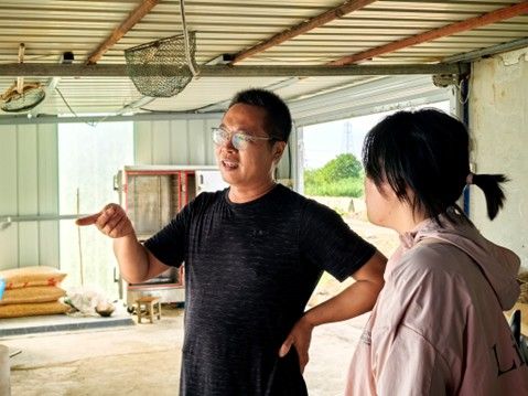 初抵金紫:邂逅生態(tài)養(yǎng)殖底色 踏入金紫村,一幅生態(tài)與產(chǎn)業(yè)共生的畫(huà)卷徐徐展開(kāi)。澄澈藍(lán)天與粼粼蟹塘相映成趣,光伏板在塘畔有序鋪展,風(fēng)車悠悠轉(zhuǎn)動(dòng),勾勒出生態(tài)養(yǎng)殖的天然基底。調(diào)研團(tuán)隊(duì)先行開(kāi)展風(fēng)景拍攝,記錄下這方水土的獨(dú)特風(fēng)貌——蟹塘如鏡,倒映著藍(lán)天白云與新能源設(shè)施,水草在塘中若隱若現(xiàn),不僅是螃蟹棲息的樂(lè)園,更暗藏生態(tài)養(yǎng)殖與鄉(xiāng)村發(fā)展的關(guān)聯(lián)密碼,為后續(xù)調(diào)研埋下生態(tài)伏筆。