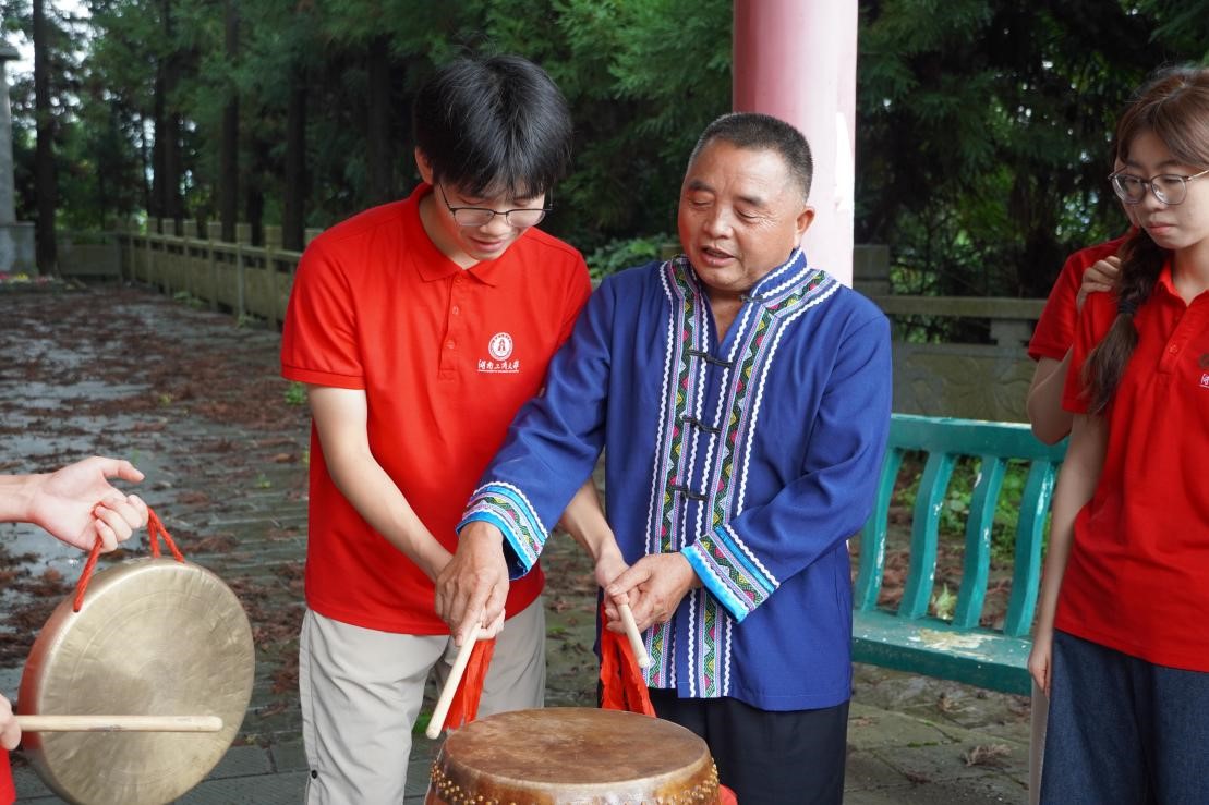 展示過后,宋老師主動提出教授團隊成員敲擊瓦鄉的特色皮鼓。他一邊持鼓槌示范,一邊耐心糾正團隊成員的力度和節奏。看著大家認真學習的模樣,宋老師臉上露出了欣慰的笑容。他表示,年輕人愿意學這門手藝,就讓他看到了傳承的希望。