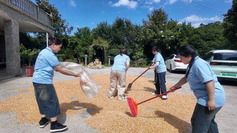 實踐第三天,早上實踐隊幫助村民干農活,讓村民們得到放松時刻