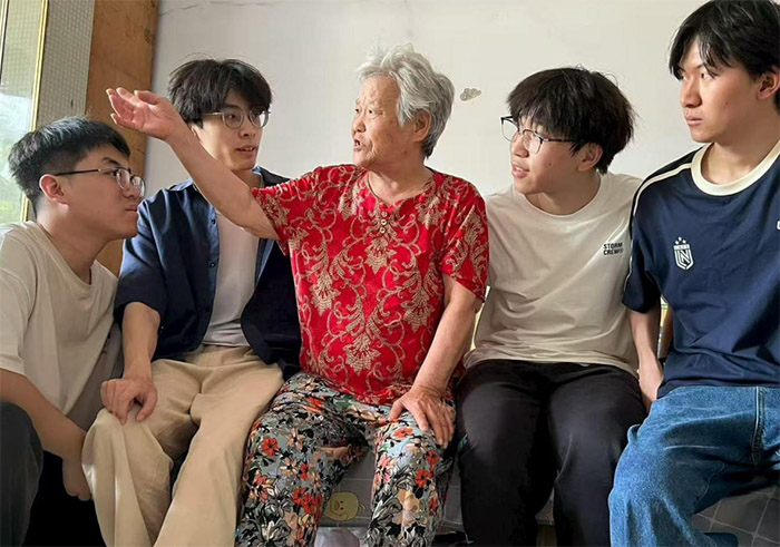 與老人相熟之后,成員們來到老人的屋里,與老人圍坐在一起,陪伴老人聊天,老人們打開話匣子,講述著過去的經(jīng)歷,志愿者們認(rèn)真傾聽,現(xiàn)場的氛圍輕松愉快。