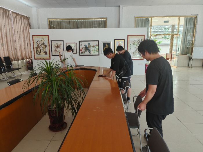 團隊成員拿著工作人員分發(fā)的打掃工具,給老人打掃活動室,整理花圃及其周圍環(huán)境,同時其他團隊成員在工作人員的指導下,給花圃里的花花草草澆水,為老人營造生機勃勃的環(huán)境。