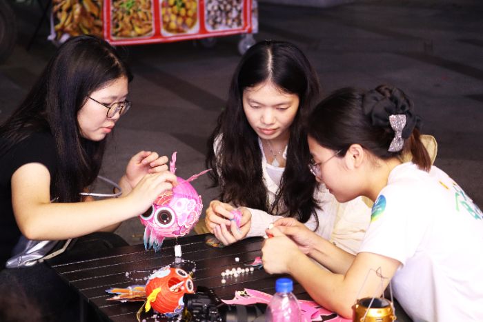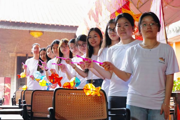 在對潘智江老師的專訪中,潘老師詳細講述魚燈六百年的興衰歷程,隊員們或認真記錄,或專注拍攝。實踐環節里,從扎架、捫紗、裝燈到著色,每道工序都讓青年學子們切身感受到傳統工藝的精妙。他們以青春熱忱觸摸非遺的鮮活生命力,讓這項傳統技藝“游”向更廣闊的未來。