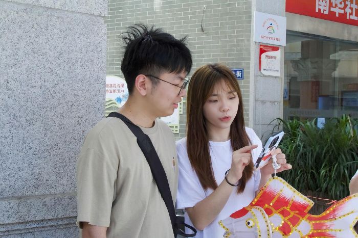 青春與傳統的碰撞,不止于技藝實踐,更在代際交流中持續升溫。青承魚燈突擊隊的隊員們,手捧精巧魚燈穿梭于大良街頭,與年輕群體展開深入交流。通過對話,不僅梳理出當代青年對魚燈文化的認知圖譜,更捕捉到年輕一代對傳統技藝的好奇與思考。