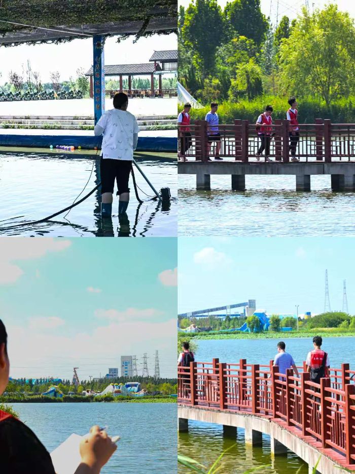 帶著疑問,同學們尋找破局答案,最終在《山東省煤炭聚集區塌陷地建設利用關鍵技術》一書中受益匪淺。其中就包括濟寧十里湖這個案例,團隊轉赴十里湖生態濕地公園考察。這里通過生態修復技術,將昔日的塌陷地改造為水域面積達2000畝的濕地公園,不僅恢復了生物多樣性,更帶動周邊發展起生態旅游和現代農業。“十里湖的成功證明,塌陷地治理需要'生態+產業'雙輪驅動。”團隊成員董開啟在調研筆記中寫道。