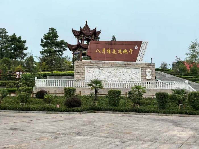 圖為實踐隊參觀商城縣“八月桂花遍地開”主題文化廣場紀念碑。王鳴樂攝