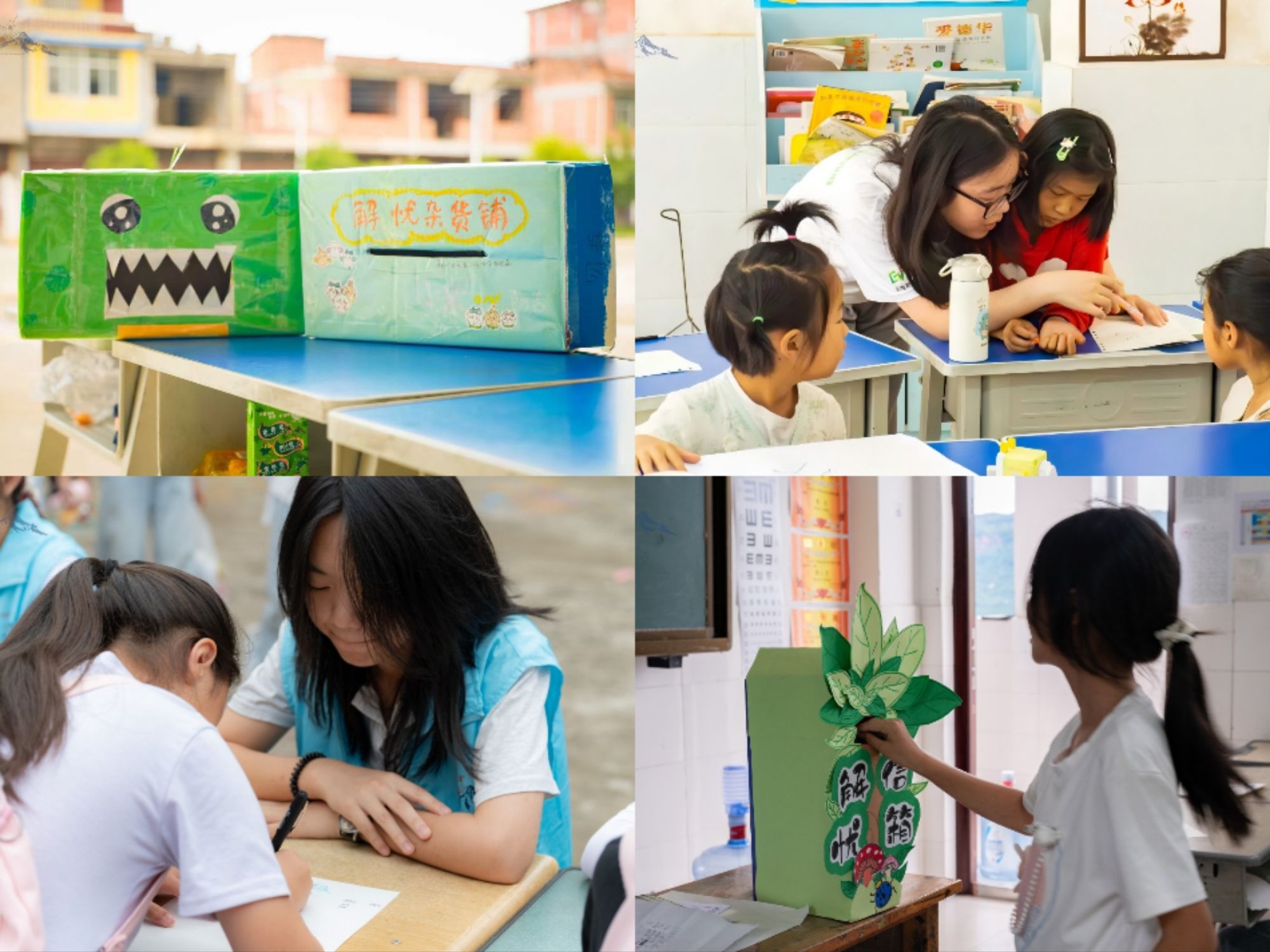 精準關(guān)愛成長,點滴耕耘,潤物無聲 為進一步了解火德紅鎮(zhèn)與新灘鎮(zhèn)兩地的教育情況,同時關(guān)注孩子們的自身發(fā)展,團隊不斷完善“成長檔案”“成長導(dǎo)師制度”,為每位孩子建立專屬個人成長檔案,點對點關(guān)注每個孩子的身心健康。交互對話里藏著細碎暖潮,堂間紙箱中收盡少年心事——“解憂雜貨鋪”成為孩子們傾訴心聲、獲得引導(dǎo)的溫馨港灣:孩子們把不敢說的煩惱、藏不住的歡喜寫在紙條上,輕輕投進箱中;隊員們則化身“解憂使者”,細細品讀每一行文字,用溫暖的筆觸寫下鼓勵與解答。在管理方面,團隊嚴格推行“班主任負責(zé)制”,對晨簽、午休、放學(xué)接送等環(huán)節(jié)實施精細化管理,確保活動安全、有序、高效運行。而每日例會則實現(xiàn)了及時匯總、精準解決課堂、管理及家訪等環(huán)節(jié)中發(fā)現(xiàn)的問題。