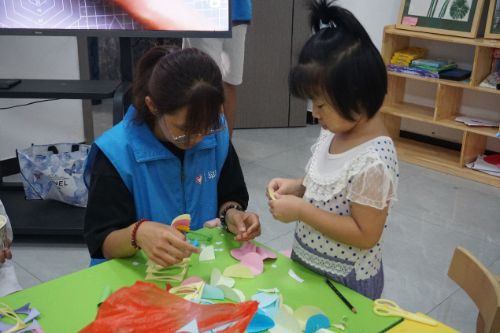 手工環(huán)節(jié),志愿者準(zhǔn)備彩紙、竹簽、膠水等材料,帶領(lǐng)孩子們制作個(gè)性化小雨傘。在學(xué)習(xí)傘面結(jié)構(gòu)搭建時(shí),孩子們發(fā)揮奇思妙想:有人用彩筆繪制卡通動(dòng)物圖案,有人寫下“盼爸爸媽媽回家”的心愿。