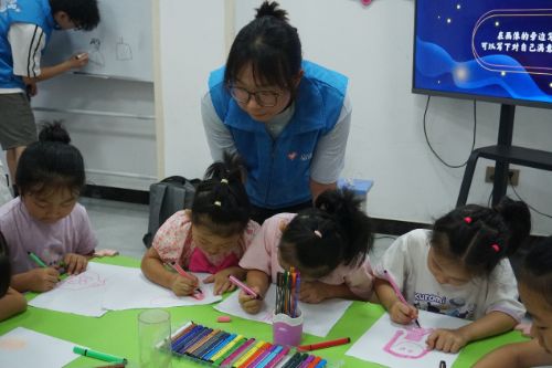 志愿者們通過(guò)色彩解讀,鼓勵(lì)孩子們分享內(nèi)心故事,幫助不善言辭的孩子將畫作轉(zhuǎn)化為情感出口。