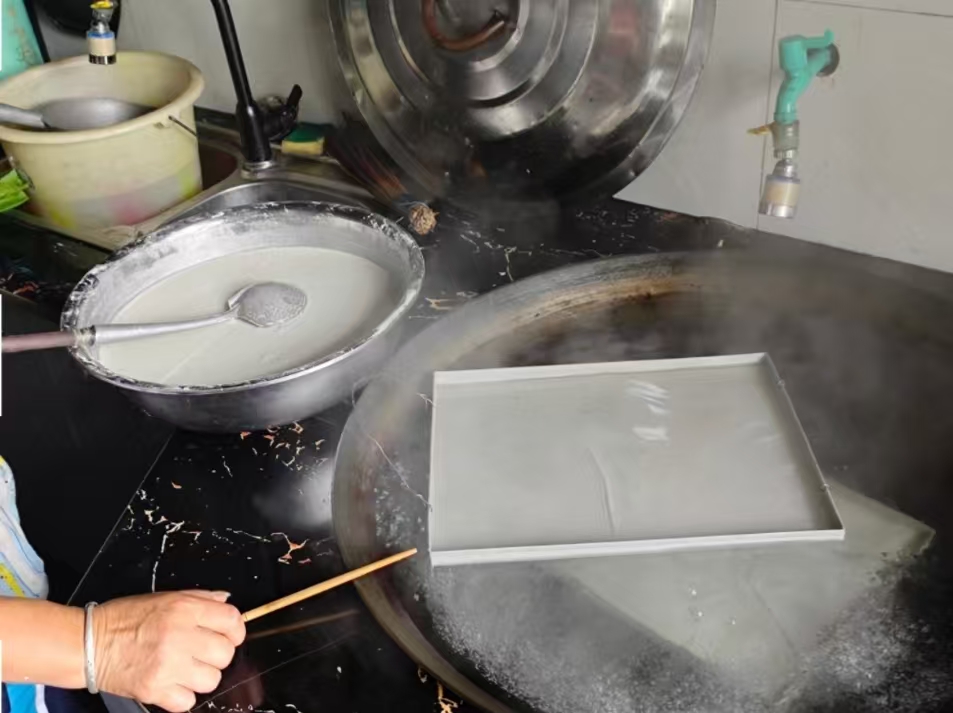 在當地村民的指導下,實踐團成員參與到紅苕粉制作的各個環節。從將紅苕磨漿、過濾,到加熱攪拌、成型,每一步都充滿了技巧與學問。成員們認真操作,感受著傳統手工藝的魅力與艱辛。
