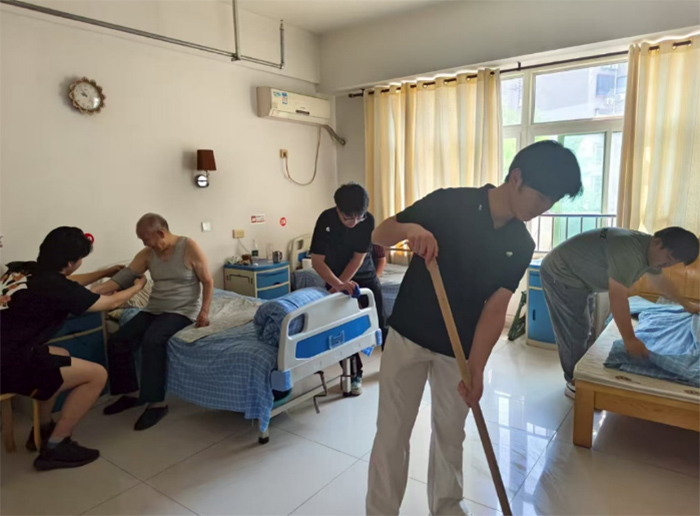 隨后,實踐團成員們再次走進老人們的房間,細心的為老人進行血壓測量,并且對老人的居住環境進行打掃和整理,給老人舒適整潔的居住環境。