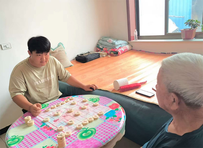 圖為實踐團成員陪老人進行娛樂活動