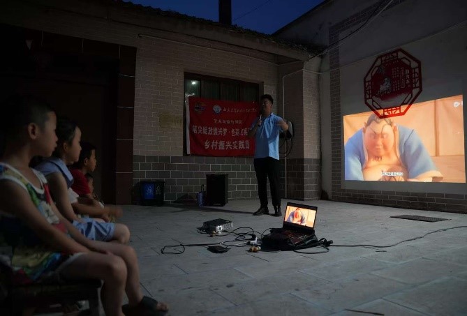 夜晚,實踐團成員在周一村組織開展文化惠民活動,村里的居民和兒童積極參與進來,共同觀影。屏幕上,光影交錯,故事緩緩展開。孩子們瞪大了眼睛,聚精會神地盯著屏幕,生怕錯過任何一個情節。電影中的主人公經歷了種種磨難,最終實現了自己的夢想,這激勵著在場的每一個孩子。村民們也被電影中的情節所吸引,實踐團的成員們坐在一旁,看著村民們和孩子們投入的樣子,心中充滿了滿足感。電影結束后,孩子們圍坐在一起,興奮地討論著電影中的情節,分享著自己的感受和啟示。實踐團的成員們也加入進來,與孩子們一起探討電影中的成長主題,引導他們思考自己的未來和夢想。