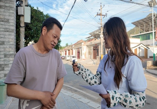 為精準把握村民需求,實踐團成員深入田間地頭,與村民面對面交流。大家紛紛表示,期待墻體美化既能讓村莊更美觀,也能展現周一村的獨特文化與自然風光,尤其希望突出獼猴桃助農產業。談及墻體主題與風格時,村民們提出諸多創意想法,如融入農產品發展、黨建、童趣等元素。