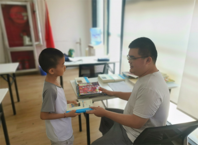 圖為實踐團成員為孩子借書