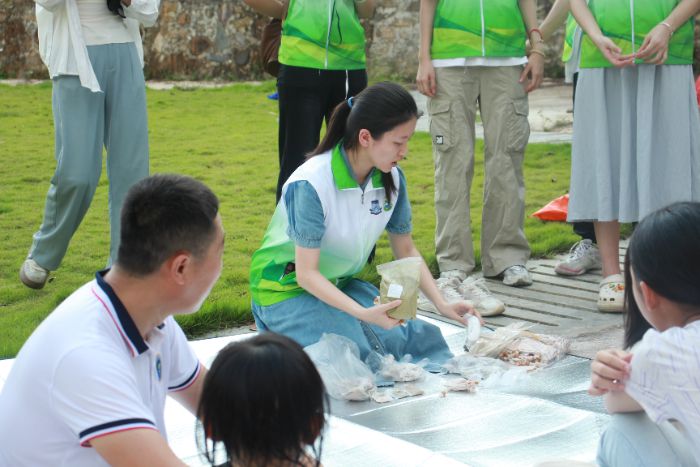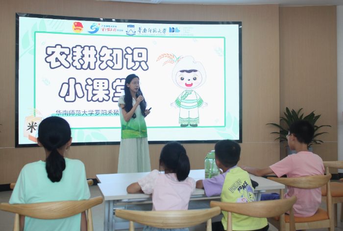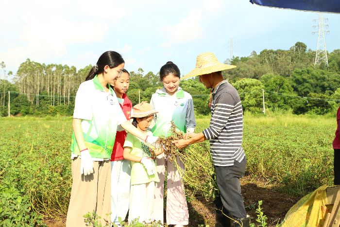 農耕文化系列課程的設計和開發,對設計的研學課程進行落地,在惠州博羅黨群服務中心和承糧陂村開展理論實踐課堂。理論課堂上,隊員們開展《米飯成長記》繪本閱讀課,講述了水稻從育種、插秧到抽穗、收割的生命周期,使孩子們理解“粒粒皆辛苦”的含義;設計“我是小農夫”情景表演,學生分別扮演稻苗、青蛙、螟蟲和稻草人等角色,了解農田生態系統;進行“稻谷繪豐年”活動,提高學生美育和創造力。