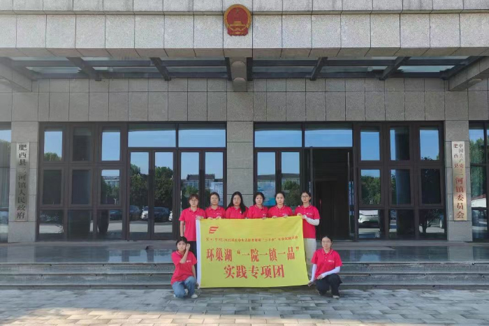 圖為實踐團成員們在肥西縣三河鎮人民政府前合影留念。牛雨婷攝