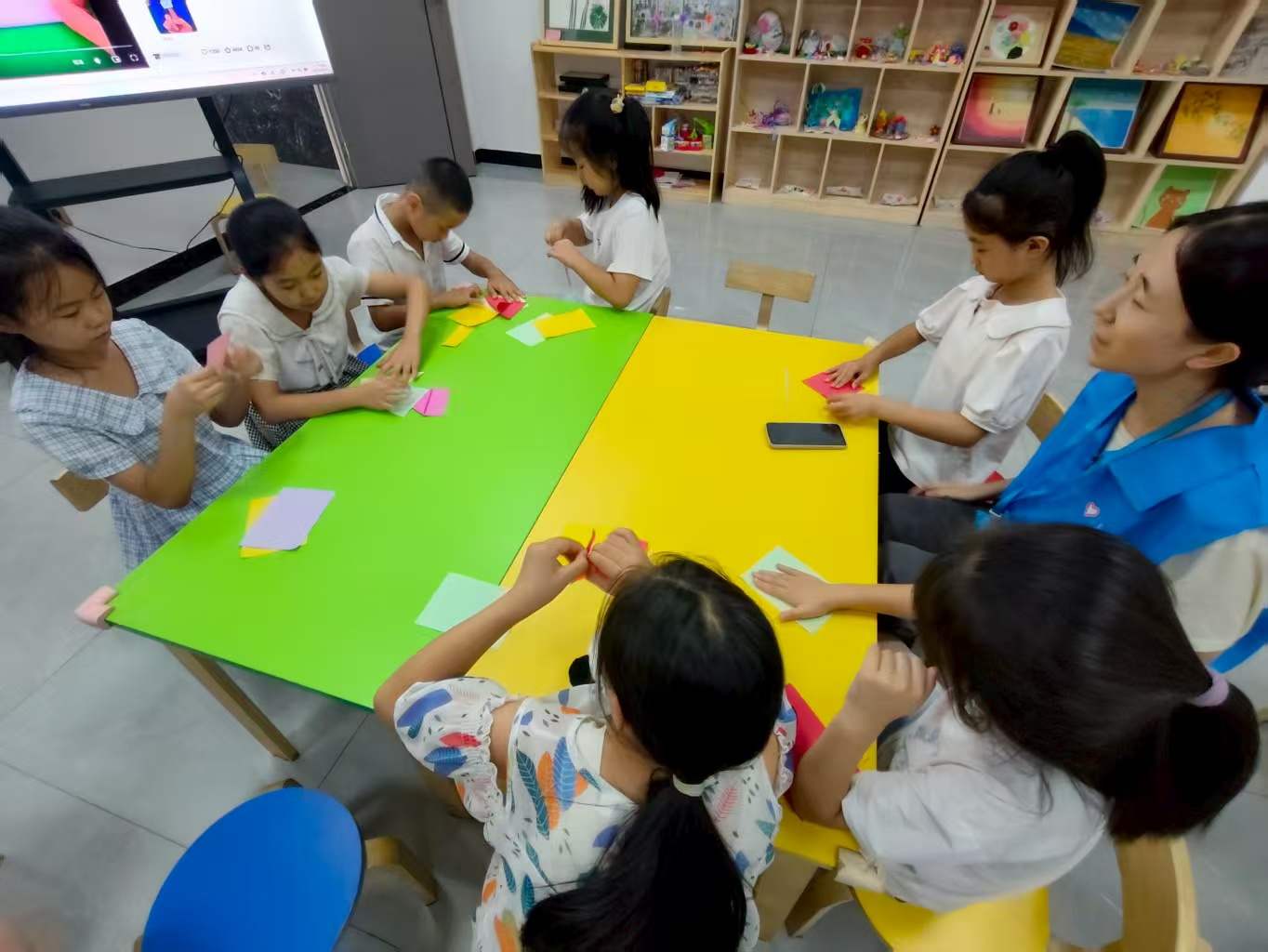 圖為志愿者為幫助孩子們完成繪手工