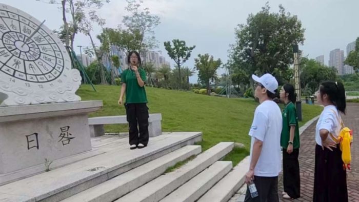 圖為“院長媽媽有約”社會實踐科普隊員為福州人才科普福清市氣象科普公園。吳澤鈺 供圖