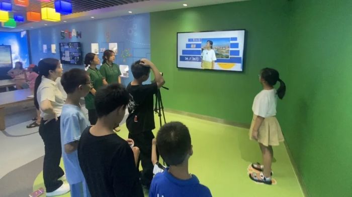 圖為“院長媽媽有約”社會實踐科普隊員指導小朋友進行天氣預報。吳羽彤 供圖