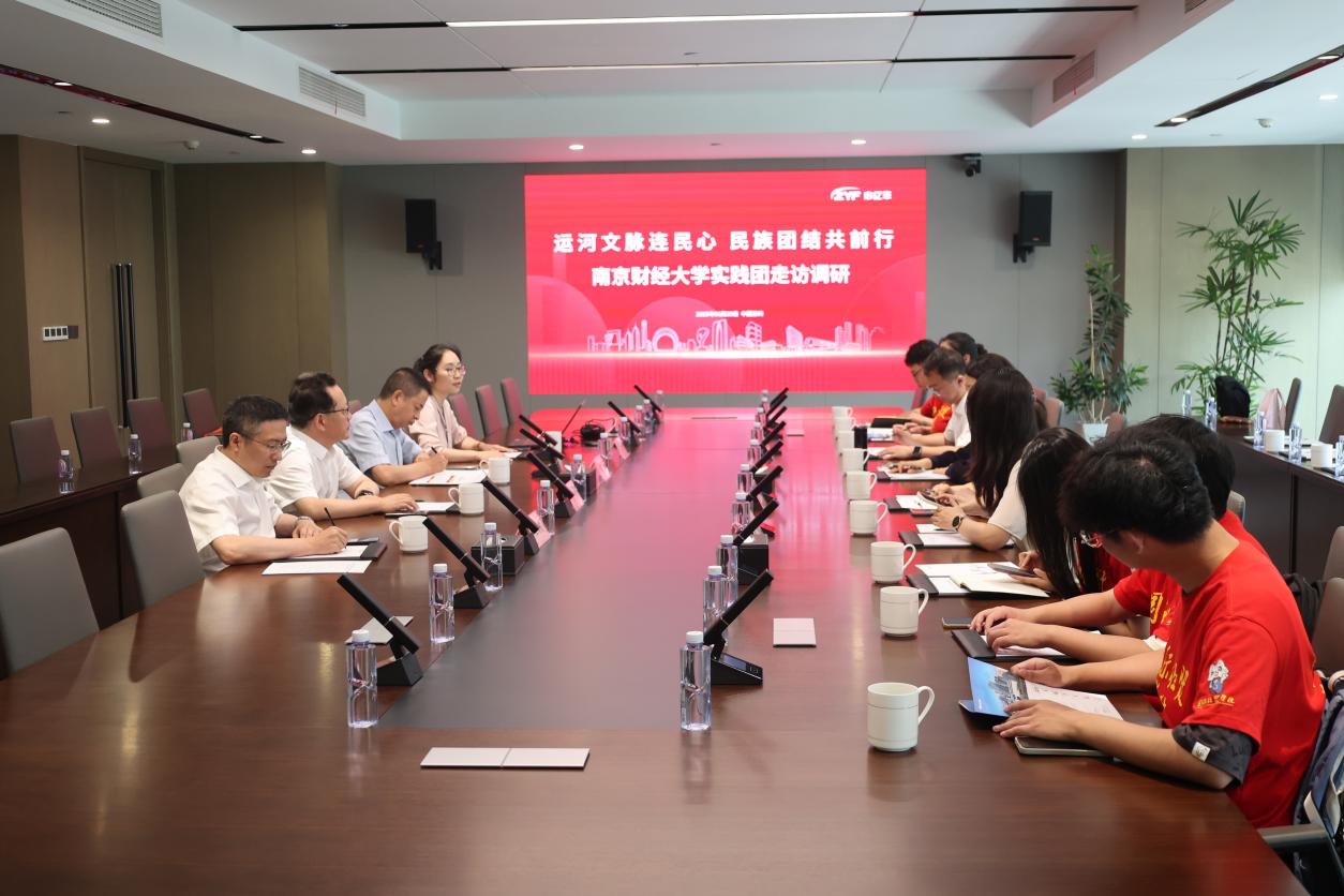 實踐團首站參觀中億豐集團,中華民族團結進步協會副會長、省民族團結進步促進會會長、中億豐董事長宮長義,中億豐黨委副書記、副總裁張浩,黨委綜合辦副總經理陳情情,供應鏈董事長、南京財經大學校友王潔晨等企業方代表出席活動并參與座談交流。其在運河沿線打造的地標工程令人矚目。從承載歷史的傳統建筑到融合科技的現代智能建造項目,清晰展現中國建造從“汗水澆筑”向“智慧賦能”的轉變。企業以綠色轉型為底色、制造升級為引擎,通過“建造筑基、制造強體、數字賦能”的路徑,為區域經濟和運河沿岸現代化建設注入動力,樹立高質量發展標桿。