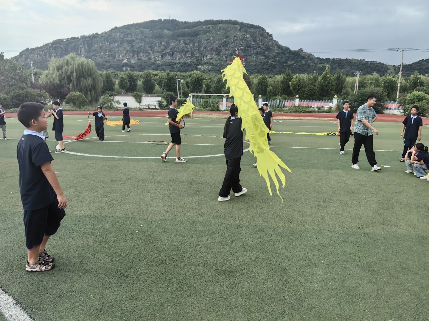 在日常早操之余,實(shí)踐隊(duì)員安排了豐富多彩的體育課程,通過組織舞龍訓(xùn)練和趣味運(yùn)動會,促進(jìn)學(xué)生德智體美勞全面發(fā)展。操場上,隨著鼓點(diǎn)響起,紅黃長龍騰空而起。實(shí)踐隊(duì)員示范動作要領(lǐng),細(xì)致講解手、腳和身體協(xié)調(diào)的要求,同學(xué)們緊握龍桿,邁步、轉(zhuǎn)身、躍動,長龍隨之上下翻飛。剛開始時(shí)隊(duì)伍零散,有的同學(xué)舞得快,有的動作不協(xié)調(diào),實(shí)踐隊(duì)員鼓勵學(xué)生與隊(duì)友保持同步,并及時(shí)分解動作、糾正問題,經(jīng)過幾次配合,長龍逐漸流暢,孩子們汗水直流卻笑容滿面。