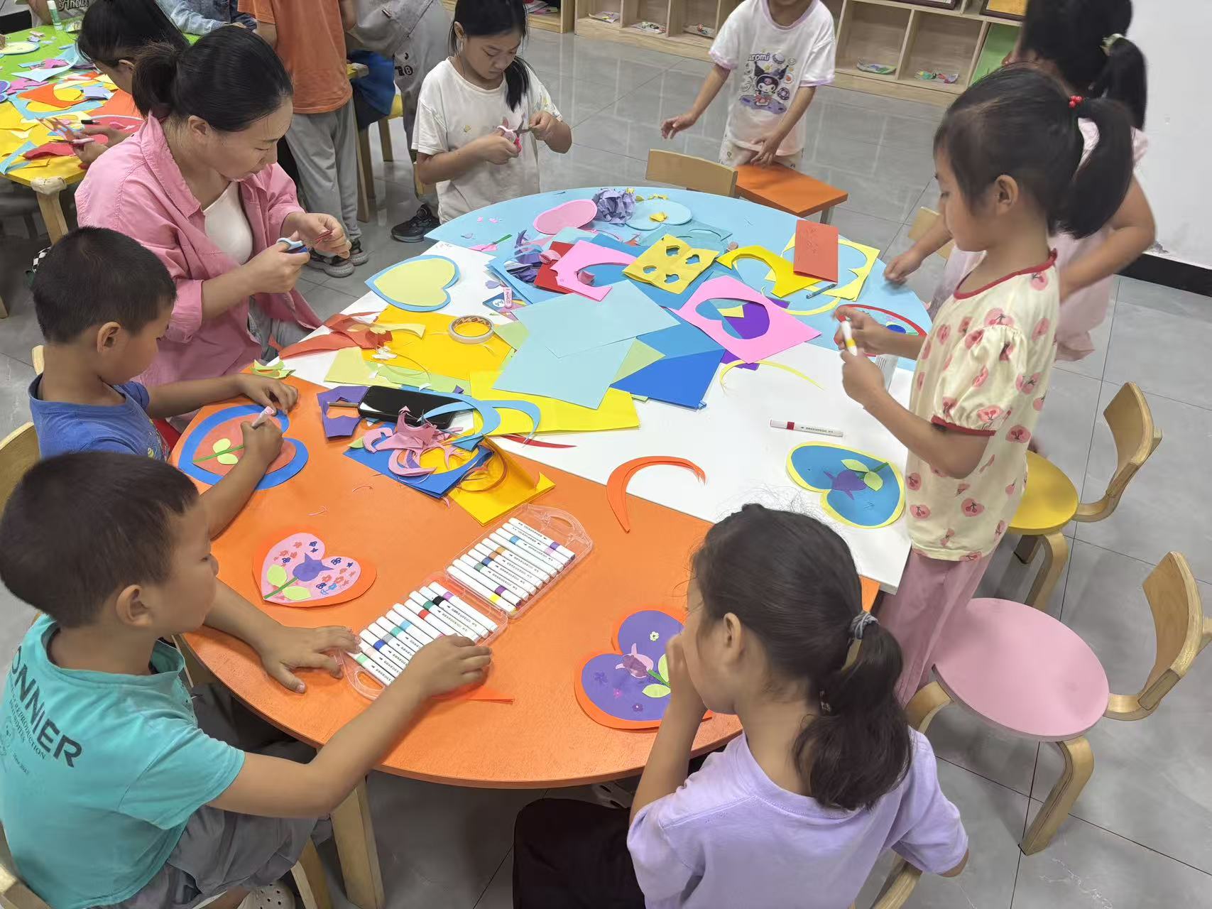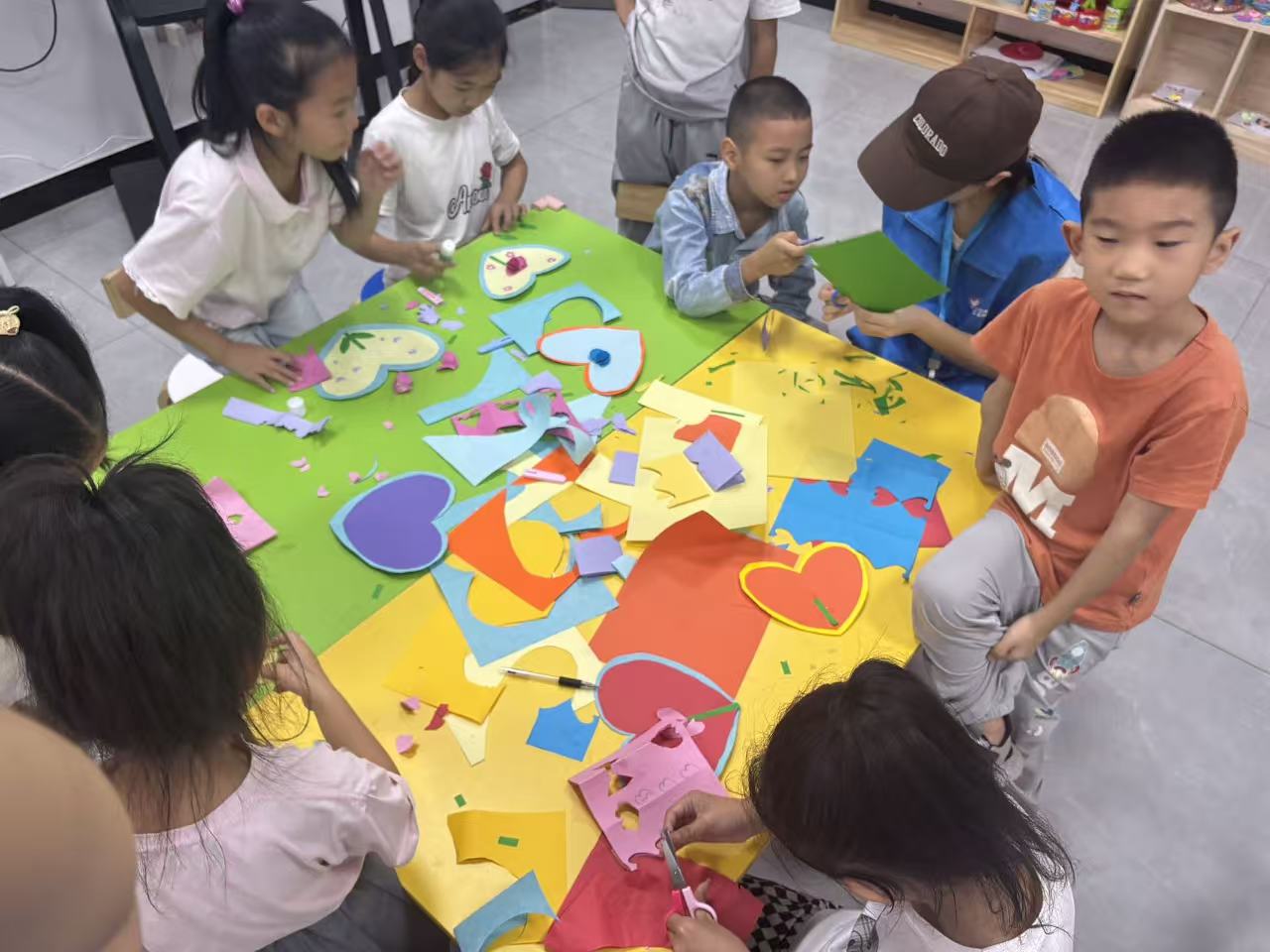 創(chuàng)作過(guò)程中,志愿者們?nèi)套o(hù)航:幫低齡兒童固定紙張、演示安全剪紙技巧,為內(nèi)向的孩子提供創(chuàng)意靈感。彩色紙屑在桌面上堆疊成“藝術(shù)小山”,十余張風(fēng)格迥異的賀卡相繼誕生,每一張都像一封封微型“感恩信”,承載著孩子們最純粹的心意。