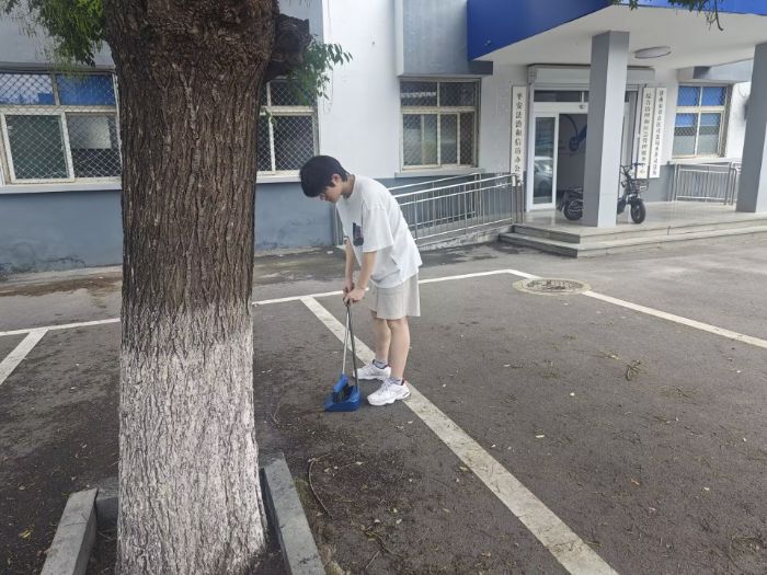 活動首日,“向上”實踐團成員就與工作人員對接,明確清潔區域以及重點部分,辦公區域,以及大門外的落葉、煙頭。和大門都是他要攻克的“目標”。辦公室區域內,實踐團成員仔細擦拭辦公桌、椅子、文件柜等辦公設施,清理桌面上的灰塵與雜物。隨后來到大門口清掃從樹上掉落下來的落葉,將堆積的落葉歸攏,再用簸箕裝入垃圾袋里。讓原本略顯雜亂的辦公區域變得整潔有序,讓來往的大門變得干凈。