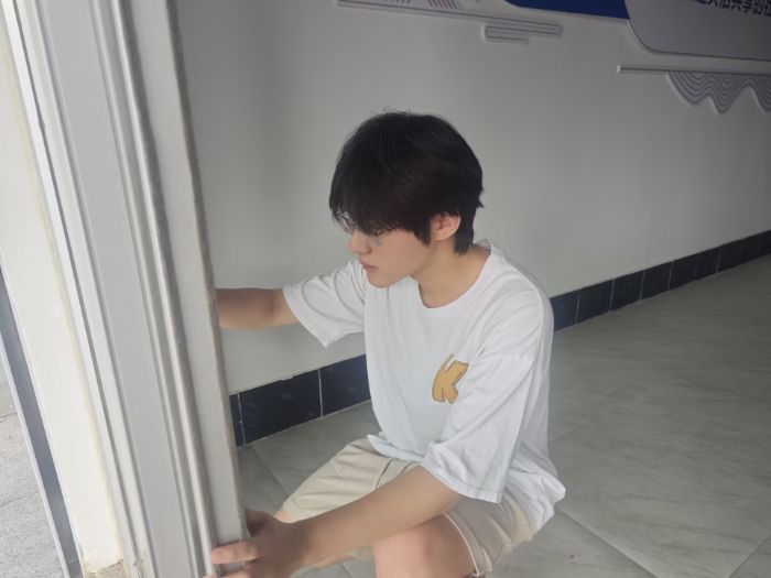 緊接著,實踐團成員開始擦拭大門。大門因長期受到灰塵和手印沾染,顯得污濁。他打來清水,浸濕抹布,從大門的上方開始,一點點像下仔細擦拭,遇到頑固污漬,就反復用力擦,直到污漬消失。一番勞作后,大門變得光潔如新。