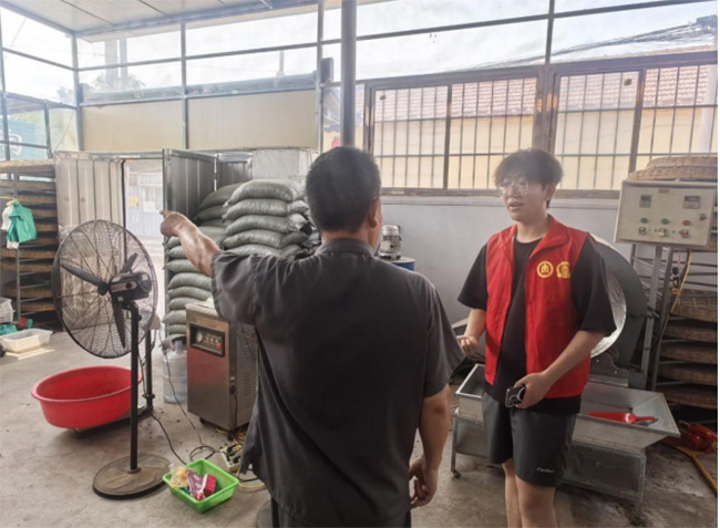 在考察過程中,隊員們不僅親眼目睹了現代化生產,也向市民介紹了日照綠茶的歷史文化,并邀請其品嘗特色茶飲,積極傳播茶文化。茶廠負責人向實踐隊員介紹了企業發展的歷程、面臨的挑戰以及在傳承中創新的實踐。