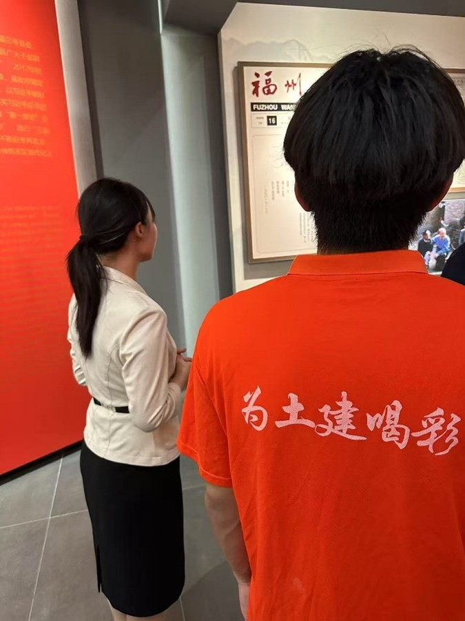 圖為“蒲公英”實踐團隊員聽解說員解說中國青年網通訊員溫揚銘攝