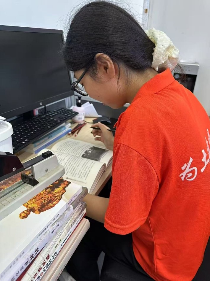 圖為“蒲公英”實踐團隊員整理資料中國青年網通訊員溫揚銘攝