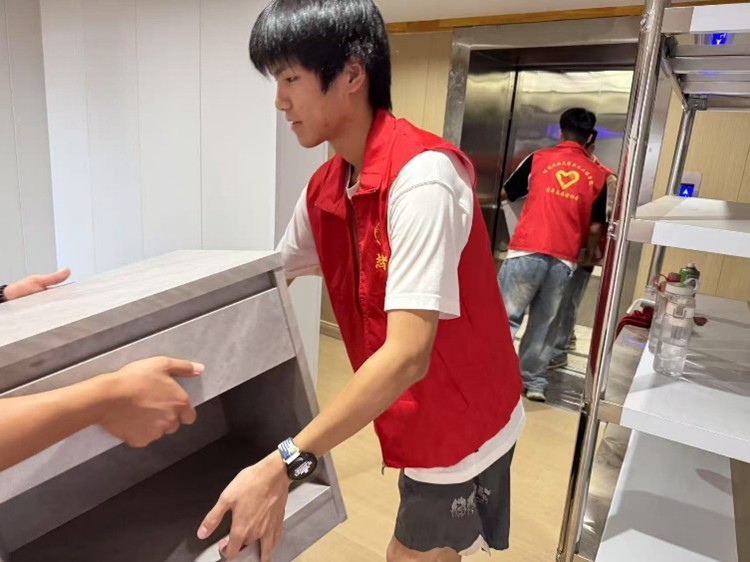 圖為“蒲公英”實踐團隊員在搬運物品中國青年網通訊員楊明馨攝