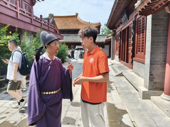 開封作為八朝古都,承載著千年歷史文脈,更是北宋名臣包拯政治生涯的重要舞臺。實踐團首站抵達依北宋營造法式建造的開封府,剛步入府衙,一陣熱鬧的喝彩聲便從戲臺傳來。演員們聲情并茂演繹的《包公鍘美案》,將秦香蓮的血淚控訴、陳世美薄情寡義的嘴臉,與包拯鐵面無私的斷案場景生動還原,瞬間將眾人帶入北宋年間的司法現場。