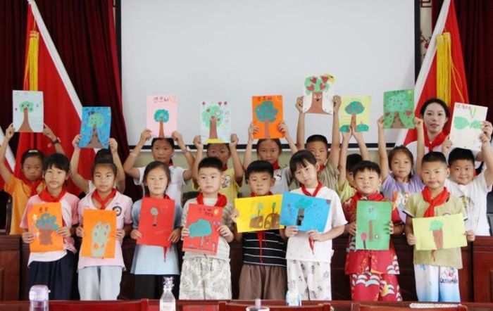 圖為孩子們?cè)谡n上繪制的“感恩樹(shù)”