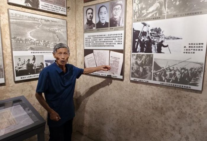 圖為“紅心潤(rùn)心團(tuán)隊(duì)”在小李莊紀(jì)念館聽(tīng)紅色講解員講述淮海戰(zhàn)役史