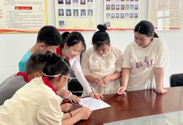 潤(rùn)心留守兒童:紅色文化滋養(yǎng)心靈成長(zhǎng) 7月11日至20日,實(shí)踐團(tuán)聯(lián)合烈山區(qū)教育局、和村村委及和村小學(xué),為30余名留守兒童打造“紅色文化引領(lǐng)・非遺滋養(yǎng)心靈”特色心理思政課程。課程貫穿普通話教學(xué)以及規(guī)范字的書(shū)寫(xiě),以“紅色故事潤(rùn)心田”啟幕:孩子們通過(guò)關(guān)鍵詞組隊(duì)聆聽(tīng)黃繼光、南湖紅船等故事,將小紅船連成“星海”感悟團(tuán)結(jié)精神;在“長(zhǎng)征”主題沉浸式活動(dòng)中,多媒體畫(huà)面與互動(dòng)闖關(guān)地圖再現(xiàn)爬雪山過(guò)草地的壯舉,孩子們通過(guò)情景討論、手工繪制長(zhǎng)征長(zhǎng)卷解鎖抗挫技巧,將精神手冊(cè)珍藏為成長(zhǎng)指南。創(chuàng)新環(huán)節(jié)“英雄奇幻畫(huà)廊”中,角色扮演讓孩童化身孝女王梅梅、水管英雄趙杰,體悟奉獻(xiàn)品質(zhì);非遺“臨渙棒棒茶”情景劇則生動(dòng)演繹“一杯茶調(diào)解法”,傳遞基層治理智慧。家校共育板塊聚焦《紙短情長(zhǎng)家國(guó)情》,留守兒童張子怡與外出務(wù)工父親同臺(tái)朗讀錢(qián)學(xué)森家書(shū),父親哽咽坦言:“平日少陪伴,今天才懂家書(shū)里的做人道理。”紅色家書(shū)與親子共讀,在孩子們心中深植家國(guó)情懷與家風(fēng)傳承。