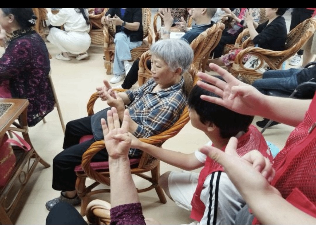 將老人們逐個(gè)安置在位置上后,在主持人的帶領(lǐng)下,隊(duì)員們有序分為幾組,與工作人員一起帶領(lǐng)老人做游戲暖場(chǎng),在老人們逐漸適應(yīng)了活動(dòng)環(huán)境后,隊(duì)員們開始對(duì)老人們進(jìn)行一些基本的認(rèn)知測(cè)試。遵循著測(cè)試的表單,隊(duì)員們各自為幾名老人講解每條測(cè)試的內(nèi)容,遇到一些沒能及時(shí)理解的老人,隊(duì)員們也會(huì)耐心的盡力解釋,有部分比較耳背的老人,隊(duì)員也會(huì)及時(shí)適當(dāng)?shù)奶岣咭袅浚_保每名老人都順利正確地完成檢測(cè)。在大家的協(xié)作下,活動(dòng)順利開展并結(jié)束,收集到的數(shù)據(jù)也提交給社區(qū),這些數(shù)據(jù)將在未來為保障社區(qū)老年人生活安全發(fā)揮巨大作用。