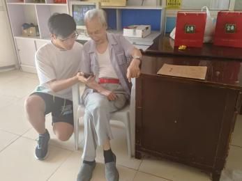 圖為實踐團成員為老人捏肩