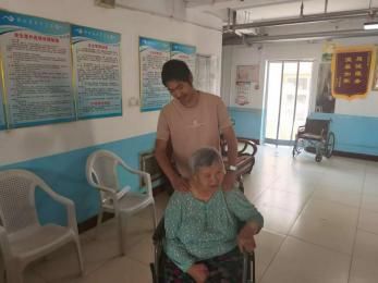 考慮的到老人行動不便,長時間倚靠在輪椅上,實踐團成員主動為老人捏肩、拍背,讓老人后背肌肉得到充分放松。在實際行動中與老人建立情感橋梁。