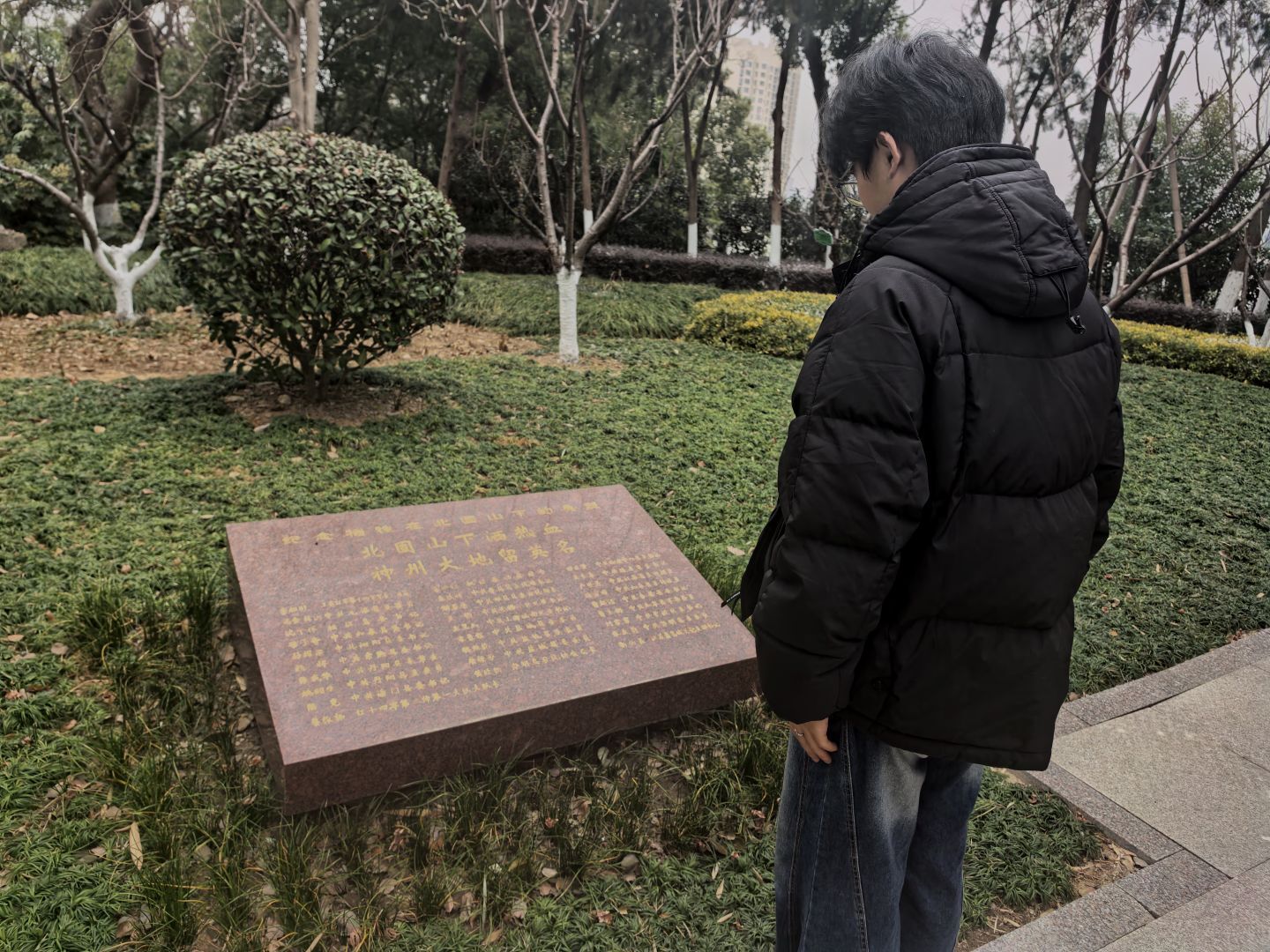 下午一點整,“荔枝一隊”全體隊員,在學校北門集合出發。抵達鎮江市烈士陵園后,隊員們首先在烈士紀念碑前舉行了莊嚴的緬懷儀式。在凜冽的寒風中,全體成員列隊肅立,向革命先烈鞠躬致敬并默哀一分鐘,深切緬懷為民族獨立、人民解放和國家富強英勇獻身的英雄們。隨后,在陵園講解員的帶領下,隊員們參觀了烈士紀念館。館內陳列的書信、軍裝、勛章等珍貴文物,以及復原的戰斗場景,生動再現了革命先輩們浴血奮戰的崢嶸歲月。