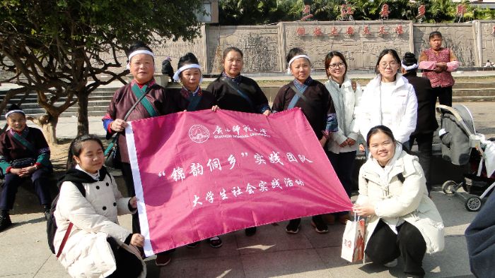 圖為團(tuán)隊(duì)成員與侗族織繡傳承人在三江縣城廣場(chǎng)合影 梁子琪 供圖