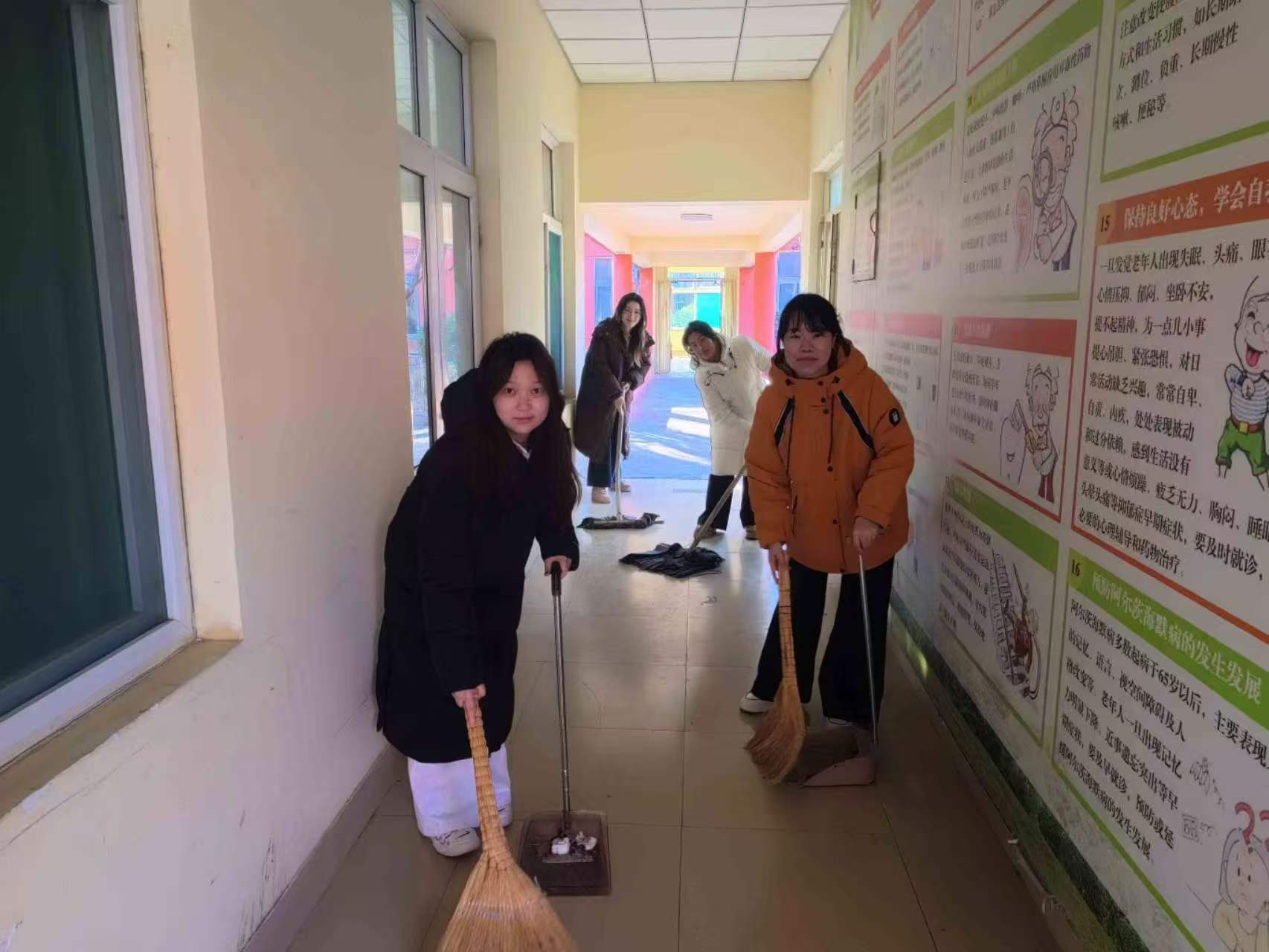 活動當天,實踐團的同學們帶著精心準備的水果、糕點和文藝節目,滿懷熱情地走進敬老院。剛一抵達,大家便兵分兩路,迅速投入到社會實踐活動中。同學們拿起掃帚、抹布,認真打掃敬老院的庭院、走廊和活動室。另一部分同學們則圍坐在老人身邊,與他們嘮家常、憶往昔,耐心傾聽老人講述過去的故事,細致詢問他們的飲食起居和身體狀況。