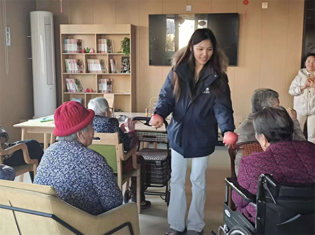 同時,實踐團成員還為老人們分發新鮮水果,送上物質關懷與節日祝福。